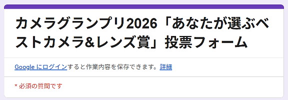 カメラグランプリ2026「あなたが選ぶベストカメラ&レンズ賞」、明日4月6日23:59投票締切 ※リンク先はhttpsではありません。