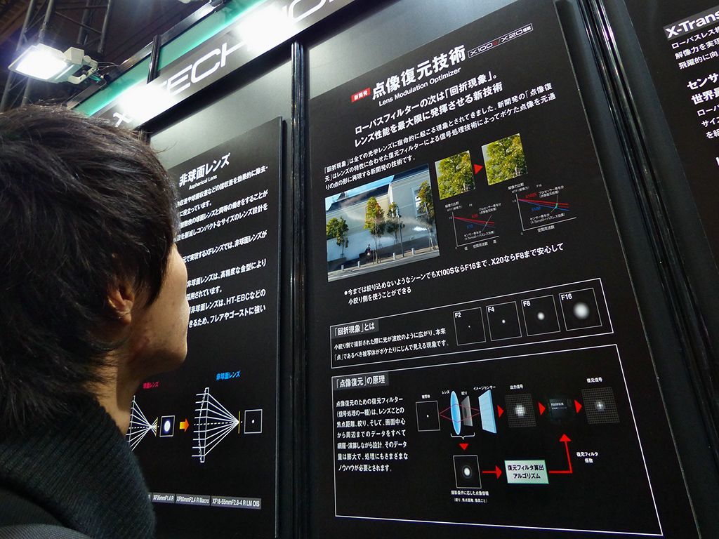 -イメージセンサーでカラー撮影を行う際の分光方法を、従来のカラーフィルターではなく、今回の「マイクロ分光素子」にすることで、CCD、CMOSなどをセンサー形式問わず、高感度化を実現可能に。 -同分光方式は、波長による光学回折の違いを利用して、撮像面に届く光を分光。100%の透過率を実現。 -カラーフィルター方式の場合、透過効率の関係などで、透過率は30〜50%程度になり、入射した光の50〜70%が損失。 -この分光素子は、通常の半導体デバイス製造のプロセスで作成可能。 -マイクロ分光素子の採用により、従来よりも、高感度で高精細な撮像が可能に。 -開発発表。詳細は当該ページ参照。 [ファームウエアUPDATE] ●富士フイルム ・FUJIFILM X-E1用ファームウエア Ver.1.04 -X-Trans CMOS搭載ミラーレス機「X-E1」用最新ファームウエア Ver.1.04を公開。 -「フジノン XF14mmF2.8R」に対応。レンズ情報を取得し適切な撮影が可能に。 -マイク/リモートレリーズ端子もしくはUSBミニ端子にリモートレリースやマイクを接続しても、シャッターボタンが動作する機能を追加。 -細かな被写体やXF35mmレンズ使用時、ワンプッシュAF動作など、さまざまな撮影条件下でのAF精度を向上。 -別売ステレオマイク「MIC-ST1」での性能を最適化。 -XF18-55mmレンズ装着時、特定焦点距離で撮影すると、左上部にわずかに色のついたラインが発生する現象を改善。 ・FUJIFILM X-Pro1 ファームウエア Ver.2.03 -X-Trans CMOS搭載ミラーレス機「X-Pro1」用最新ファームウエア Ver.2.03を公開。 -「フジノン XF14mmF2.8R」に対応。レンズ情報を取得し適切な撮影が可能に。 -細かな被写体やXF35mmレンズ使用時、ワンプッシュAF動作など、さまざまな撮影条件下でのAF精度を向上。 -別売ステレオマイク「MIC-ST1」での性能を最適化。 -XF18-55mmレンズ装着時、特定焦点距離で撮影すると、左上部にわずかに色のついたラインが発生する現象を改善。 ・フジノン XF35mmF1.4 R ファームウエア Ver.2.02 -富士のXシリーズ用標準レンズ「XF35mmF1.4 R」用最新ファームウエア。 -さまざまなシーンでのAF精度を向上。