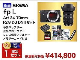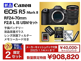 -カメラ系では、「新春豪華セット」ニコン、キヤノン、ソニー、リコーイメージングの豪華セットを展開。 -ソニーは「α9III」をベースに、レンズ3本とアクセサリーで1,798,000円。21%引き。 -ニコンは「Z8」ベースに、レンズ3本とアクセサリーで998,000円。25%引き。 -キヤノンは「EOS R6II」ベースで、レンズ2本とアクセサリーで498,000円。 -リコーイメージングは「PENTAX17」とフィルムで89,800円。22%引き。 -1月5日まで実施中。 |