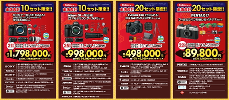 -カメラ系の新春初売りドリームセット」などは1月15日まで実施中。 -100万円超のドリームセールでは、ニコン、キヤノン、ソニー、OMデジタルソリューションズの上位モデルメインの展開に。 |