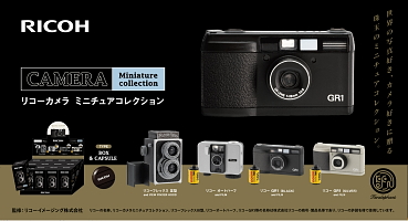 -ミニチュアは「リコーフレックス V型」「リコー オートハーフ」「リコー GR1 (BLACK)」「リコー GR1 (SILVER)」の4種。 -カプセルトイとブラインドBOXでの販売に。 -1月27日より展開。ケンエレファント直営店では1月20日より数量限定販売予定。 -原宿の「GR SPACE TOKYO」では、ミニチュアコレクションとして1月30日より販売。 -カプセル型のガチャガチャは一回 500円。 -中身の見えないブラインドボックス型は一箱 550円に。 |