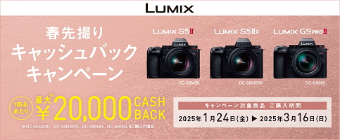 ●パナソニック ミラーレス機「LUMIX S5II」「S5IIx」「G9 ProII」対象に 最大20,000円をキャッシュバックする「LUMIX 春先撮りキャッシュバックキャンペーン」実施
