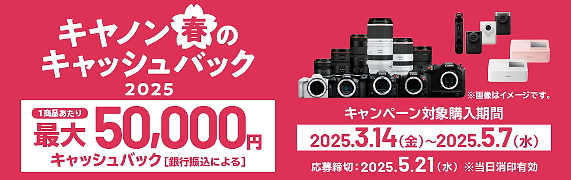 ●キヤノン 「EOS R3」を5万円、「R6 Mark II」を3万円キャッシュバックする「キヤノン 春のキャッシュバック2025」実施
